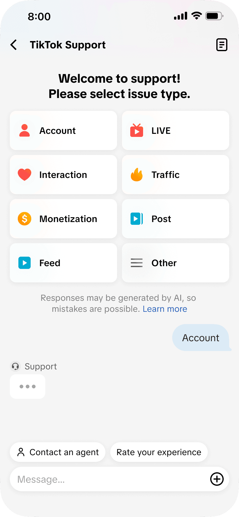 Introduces multiple feedback formats beyond standard text, including follow recommendations, ticket submission, conversational guidance, and input prompts, enabling faster issue resolution.